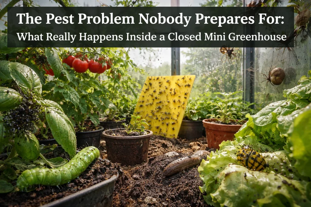 The majority of buyers consider what they want to grow in a small greenhouse before purchasing it. It’s probably tomatoes. Some chillies, some early salad crops, and some seedlings planted before the outdoor season begins. Nearly all of the reasoning is logical, proactive, and plant-centric. Neither the ecosystem created by a sealed, warm, humid structure for everything that feeds on those plants, nor the speed at which it can go from manageable to overwhelming once it gets going, play a significant role in that mental image.