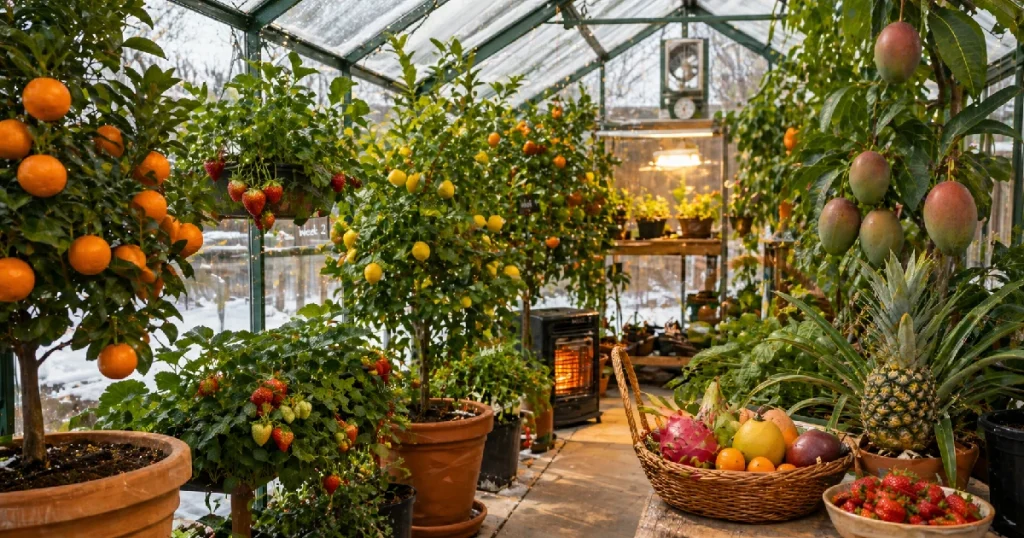 The concept seems illogical at first. Fruit is a summertime promise, after all. Most of the most productive greenhouse fruits are either compact, cold-tolerant, or well-adapted to container growing, so they can thrive in a backyard structure even if it is only slightly insulated. Calculations are completely different in a protected environment. Even an unheated greenhouse can maintain temperatures that are 10 to 20 degrees warmer than the outside air. When you add a few barrels of water as thermal mass, that gap gets even wider. Fruit that would otherwise succumb to frost needs that margin.